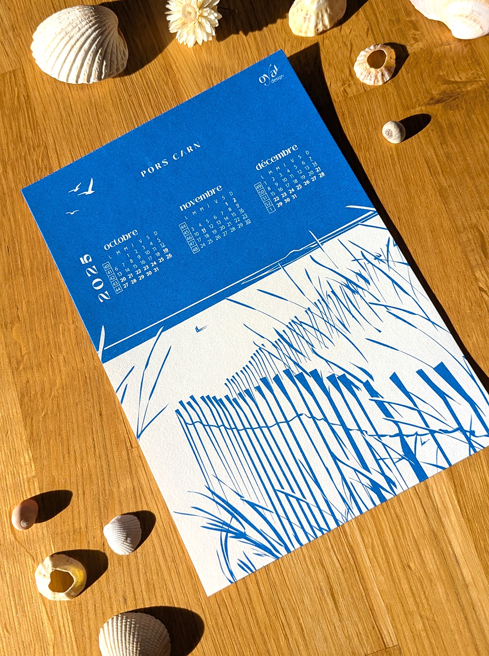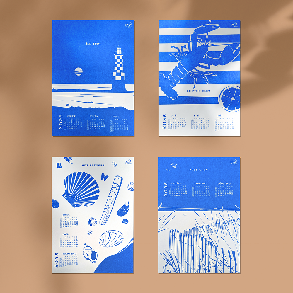 Calendrier sous la forme de 4 cartes : l’Ile-Tudy, le P’tit bleu, mes Trésors, Pors Carn